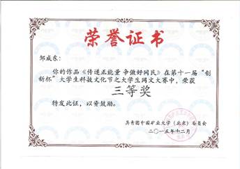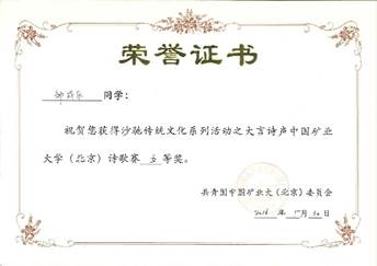 (e)创新杯大学生科技文化节 (f)诗歌赛获奖证书