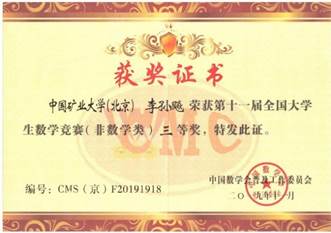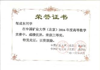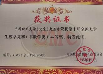 (c)北京市大学生数学竞赛获奖证书 (d)全国大学生数学竞赛获奖证书