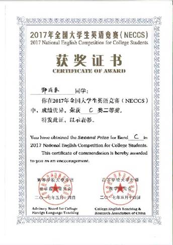 (c)校三等奖学金证书 (d)全国大学生英语竞赛二等奖