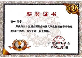 (i)全国部分地区大学生物理竞赛三等奖获奖证书