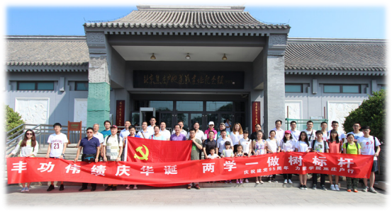 ——祝建党95周年,力建学院焦庄户行2016年7月2日,为庆祝建党95周年,力建学院举行了“丰功伟绩庆华诞,两学一做树标杆”焦庄户红色行,活动既是我院党委内部学习,更是我院举行的一次统战活动,本次活动得到校党委的大力支持。本活动由学院书记周宏伟主持,学院教工党员、学生党支部书记及党内外师生共52人参加。