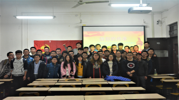 第二,研究生史月学长讲述了本次班会的主要内容“信仰的传承—信仰篇”, 并请刘兵权和贾长恒两位学长讲述自己与党的故事。刘小珍学长细致的讲述了入党的 21 个流程,梁君老师做了补充。胡金柱学长系统的介绍了社会主义核心价值观, 讲出了党对大学生的要求。信仰篇最后,史月学长提出了党对党员的要求“三严三实,两学 一做”。 第三,史月学长讲述了“传承篇”,讲述了我校力学系在历代优秀教师的带领下迅速发展的历程。并简单介绍了力学的课程与就业前景。