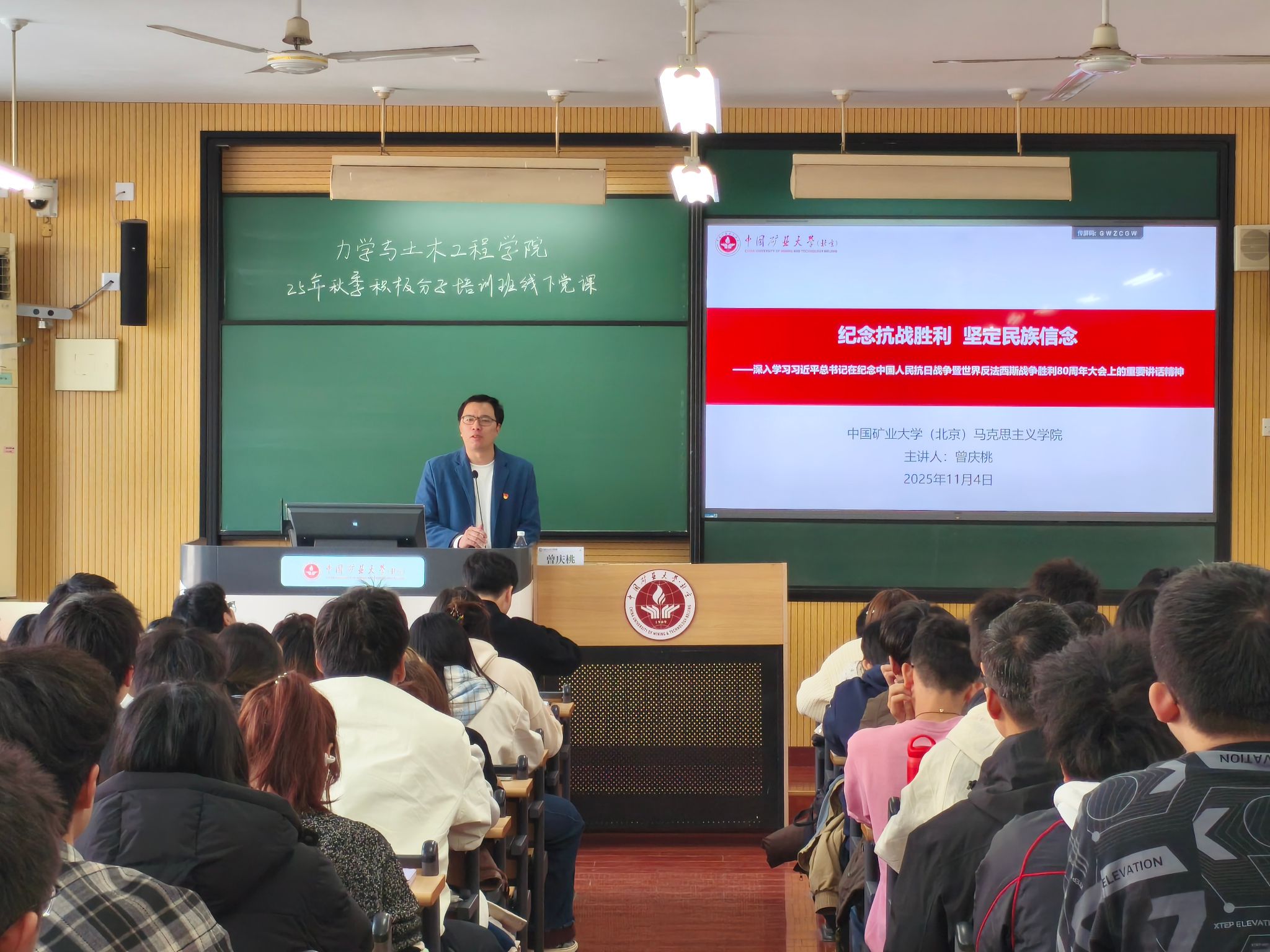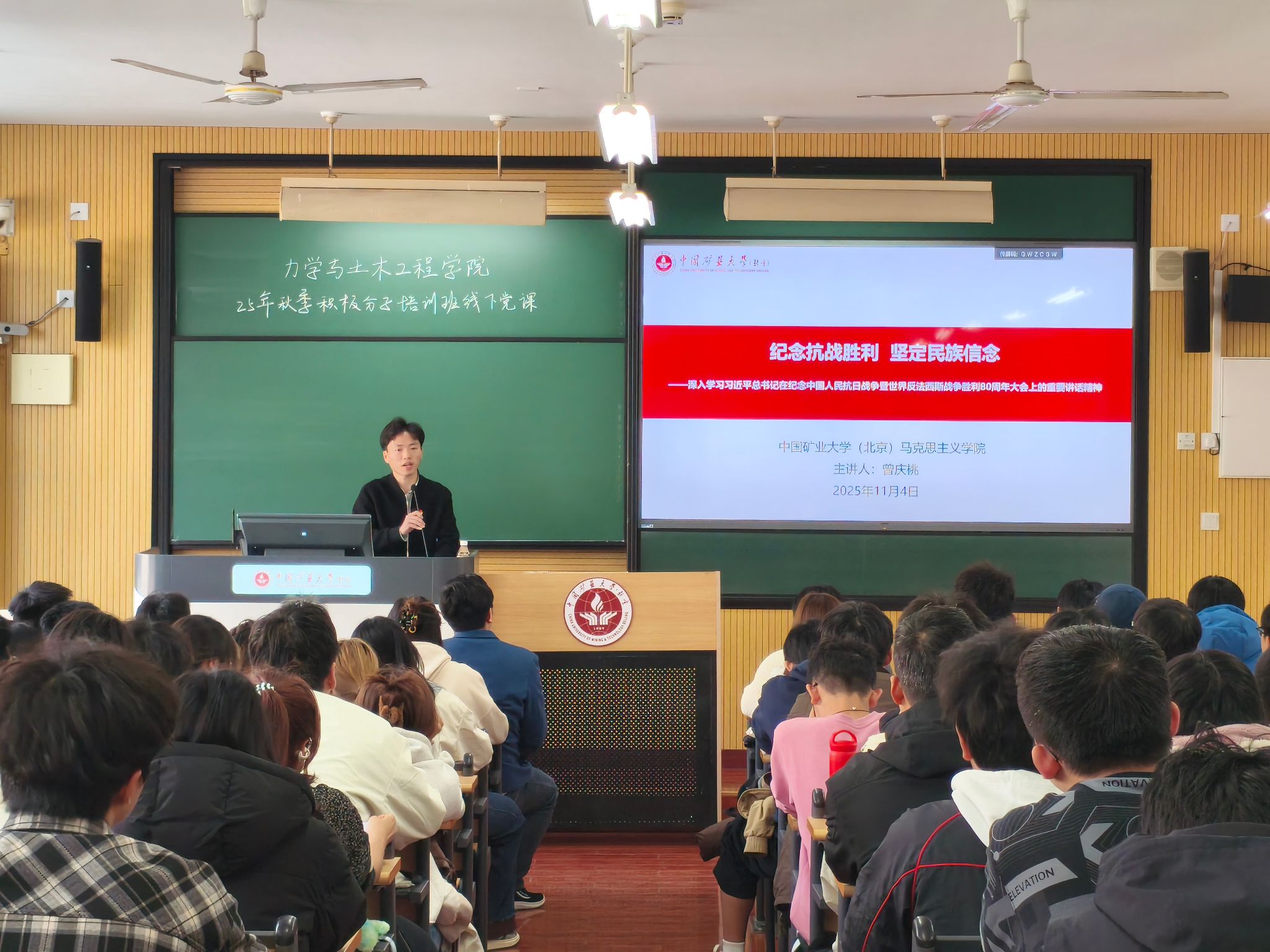 为扎实做好2025年秋季学期入党积极分子培训工作,引导青年学子铭记抗战历史、传承红色基因、坚定理想信念,端正入党动机,11月4日下午,力学与土木工程学院党委在组织学员赴中国人民抗日战争纪念馆实地参观学习的基础上,将实践感悟与理论学习相结合,在教学楼216教室举办了“纪念抗战胜利,坚定民族信念”专题党课。本次党课邀请到马克思主义学院曾庆桃副教授主讲,学院党委专职组织员艾博主持,2025年秋季学期全体入党积极分子、本二党支部书记尹自豪、全体新任党支部书记一同参加培训。