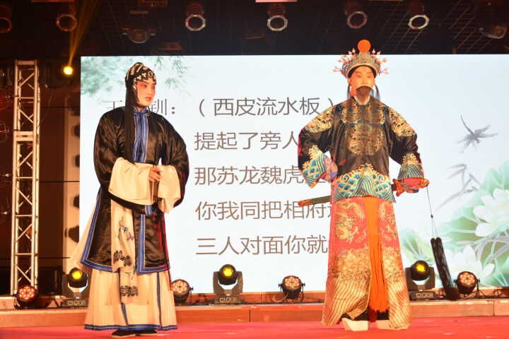 第三个节目是多才多艺的大二辅导员汤文达与研究生杨嗣涛学长带来的京剧。专业的扮相,地道的唱腔,使得同学们对这位导员有了更加深入的认识,同时也再一次拉近了同学们和导员之间的距离。