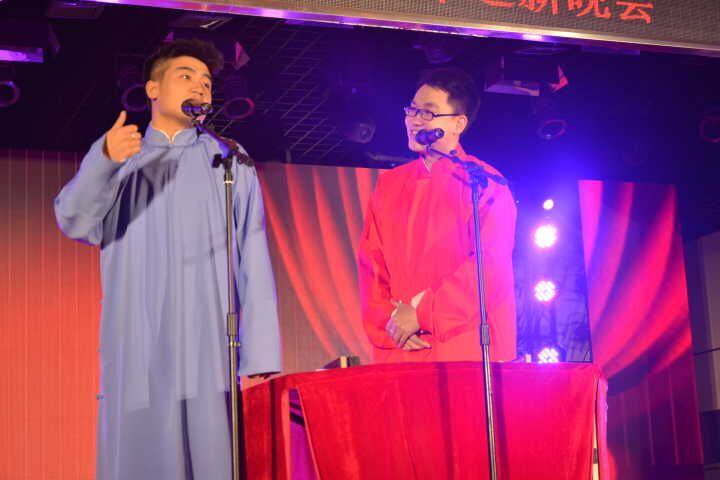 随后便是作为重头戏,由大二辅导员汤文达与大一辅导员黄一霖老师为大家带来相声《你怎么说》。在相声中,两人默契配合,成为了全场气氛的支配者。也是通过这个相声,将两位导员的各种才艺完整展现了出来,不得不让人感慨两人的多才多艺。同时,伴随着相声引起的欢笑声,同学们跟导员打成一片,再也没有了生疏。