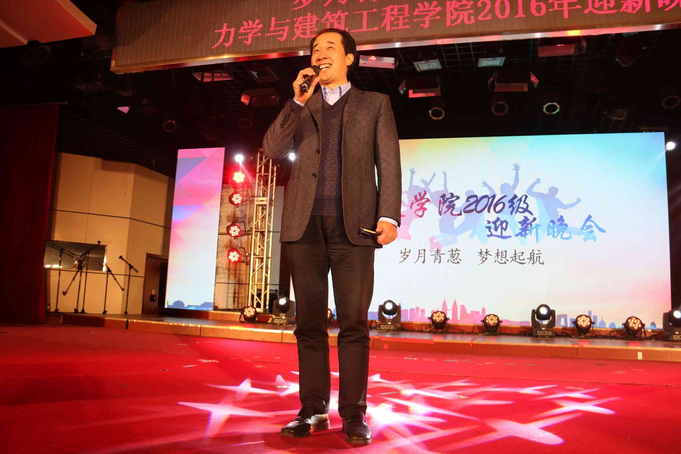 晚会开始,首先是力建学院党委书记周宏伟教授上台致辞,周书记首先代表全体老师向参加晚会的同学致以问候,然后发表了一段正式流利的英文演讲,希望同学们同学注重学习,并且要学会感恩。