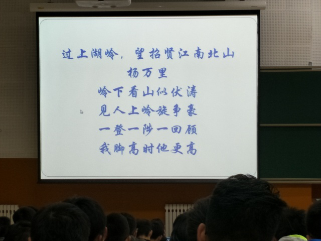 吴楠老师以杨万里的这首诗作为讲座的开头,告诫我们学习永无止境,到了大学学习上不能丝毫放松、懈怠,一定要抓紧时间努力学习。