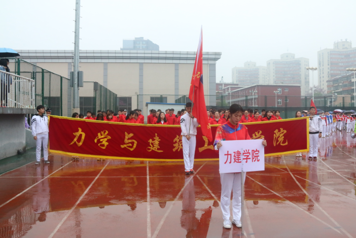 尽管在开幕式的过程中,天公不作美,但这丝毫没有影响大家的精神面貌,我院方阵队员们朝气蓬勃、像即将踏上征途的士兵,昂首阔步地走过主席台。整齐的方阵,坚定的口号,展现出了我院健儿无畏无惧的精神,和力建出鞘势不可挡的气势!