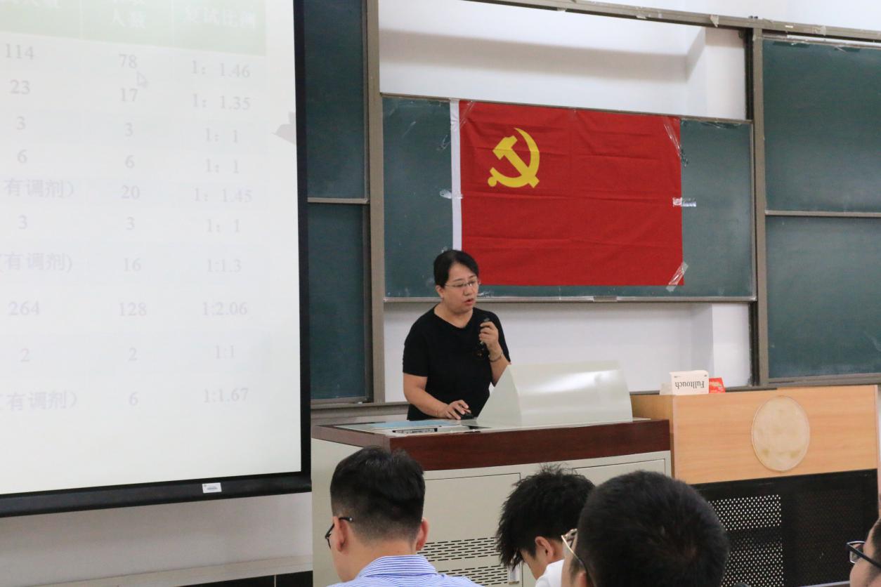 学院副院长宋彦琦以“守初心,担使命,奋力拼搏成就考研梦想”为主题发表讲话。宋院长以本次主题教育对于当代大学生的重要意义为出发点,分析了大学生在毕业后应该担当的时代使命与社会责任。她还针对学生需求重点介绍了2019年考研招生以及初试复试情况,结合往年数据,全方位分析了考研趋势及具体细节,解析了2020年招生简章的一些细微改变,鼓励同学们肯学勤学苦学,不断为建设祖国积累本领。