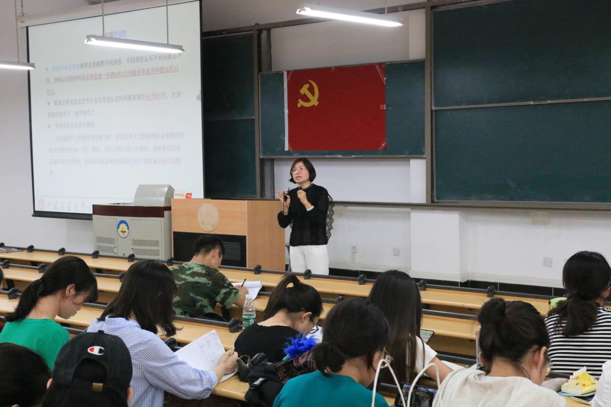 接下来,学院院党委副书记项丽娜以“青春之我,奋斗之我,创建青春之中国”为主题进行讲话。项书记结合“不忘初心,牢记使命”的本质与真谛,就国家宏观战略部署情况,国家人才缺口局面以及本科生就业整体形势与状况、近年来学院本科毕业生去向和发展状况、学院就业升学质量、就业过程中遇到的相关问题和个人在求职中需要注意的方面,进行了专业和细致的讲解。项书记深入浅出的用同学们的身边事为例,表达了学院对于每一名学生的爱护和重视,希望同学们能真正重视本次主题教育,以此为契机,坚定爱国爱党的决心,树立爱校的情怀。