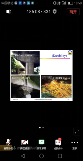 - 王健老师《城市地下管网工程原理与应用》 - 上课前和学生试过使用雨课堂和腾讯课堂、腾讯会议,最后决定使用腾讯会议。周一1-2节通过腾讯会议准时上课,分享课件屏幕,同时打开摄像头,学生老师可以相互看到彼此的状态,全体静音,使讲课没有杂音,保留学生自己解除静音的权力,可以随时开麦提问和回答问题,中间还可以通过腾讯聊天打字集体回答老师的问题,保持互动交流,点击个别同学开麦,达到检查和个人提问,效果很好。学校或学院应该推荐腾讯,并且应该尽快提供一个详细说明。