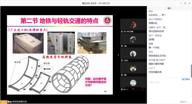 - 刘波教授的《地铁与轻轨》 - 这门课采用课前PDF课件发送与交流,课堂知识点相关问题布置,事先录制课件视频为网络授课发挥了重要作用,学生看PPT讲解视频50分钟-60分钟,课后腾讯会议线上答疑半小时等相结合的方式效果很好。刘老师还推荐了同济大学、中南大学、西南交大等几个高校同类型的课程辅助学习。