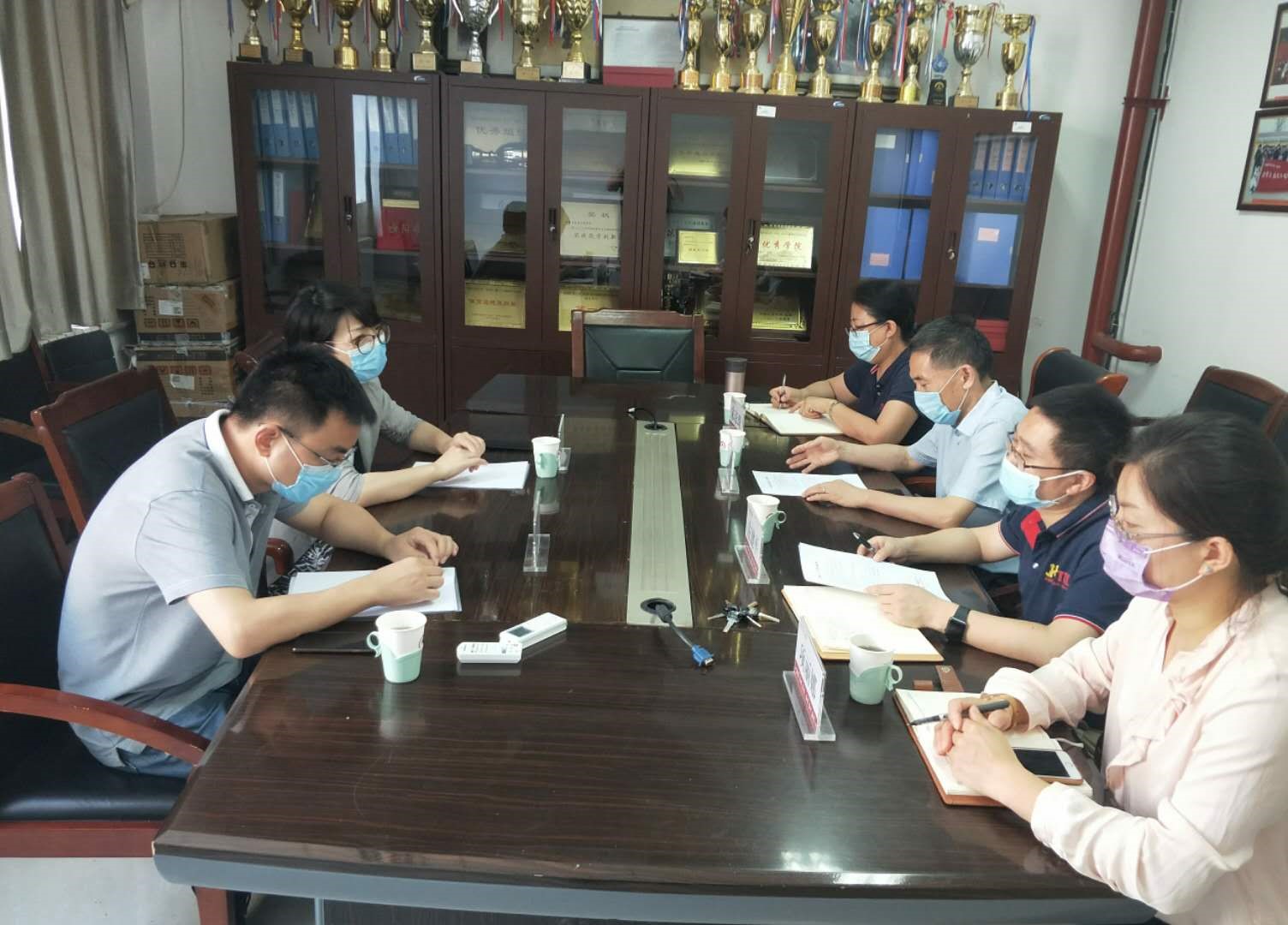 6月1日,学校恢复正常工作秩序的第一天,学校对外联络与合作处处长高洁、副处长张利到我院调研,院党委书记单仁亮、院长左建平、院党委副书记项丽娜、副院长宋彦琦、办公室余妍妍主任和卢晋波副主任出席调研会。