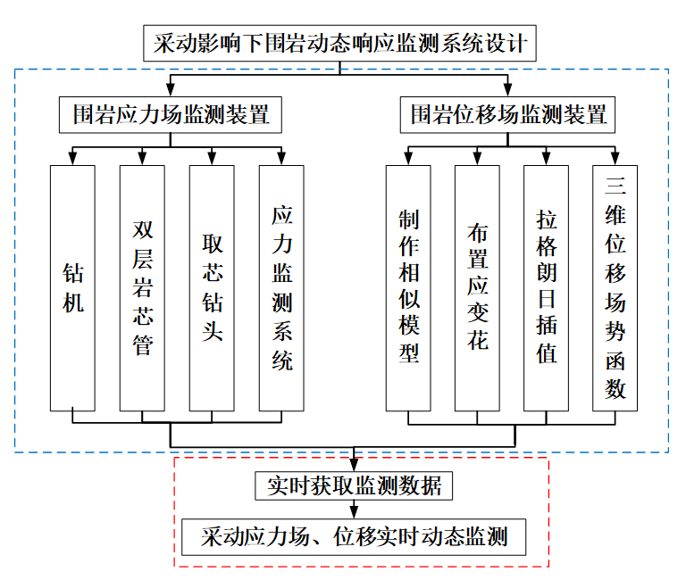 结合以上两种方法,构建了围岩受工作面开采扰动的动态响应监测系统,实现了围岩采动应力与内部位移的协同监测,得到开采扰动下围岩内部应力和位移的动态变化规律,综合判别围岩应力和位移的动态演化过程,为煤矿动力灾害预警提供新思路,对于研究冲击地压机理及其预防具有十分重要的科学意义和工程指导价值,为深部矿井巷道及工作面的安全开采提供保障。