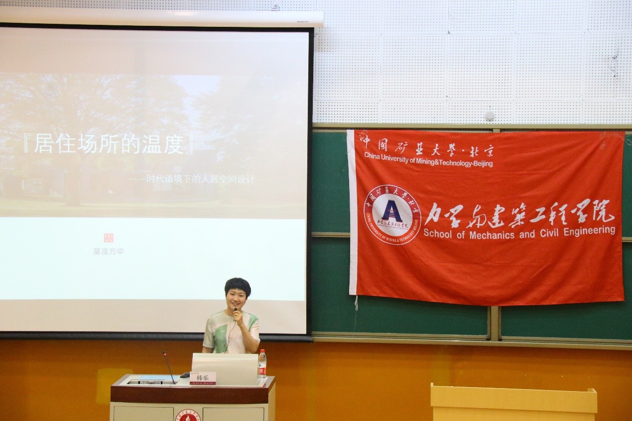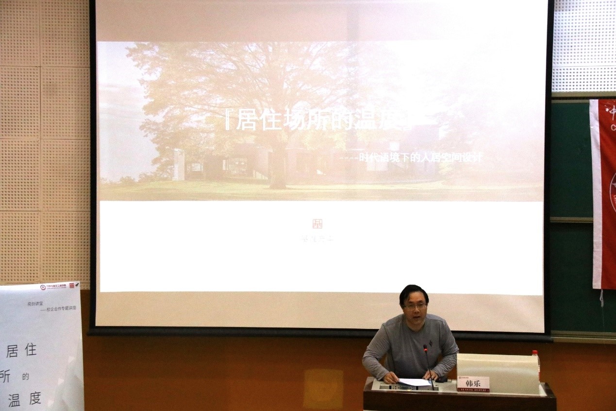 2021年5月25日,我院有幸邀请到与我院签订校企合作人才培养基地、实践实习共建基地协议的基准方中建筑设计有限公司设计总监韩乐,为我院师生做主题为“居住场所的温度——时代语境下的人居空间设计”的讲座,讲座由建筑学系副主任郑利军主持,基准方中建筑设计有限公司人力资源经理闪阳阳、人力资源专员于越,力建学院建筑系段勇老师,各年级辅导员以及200余名学生参加了讲座。