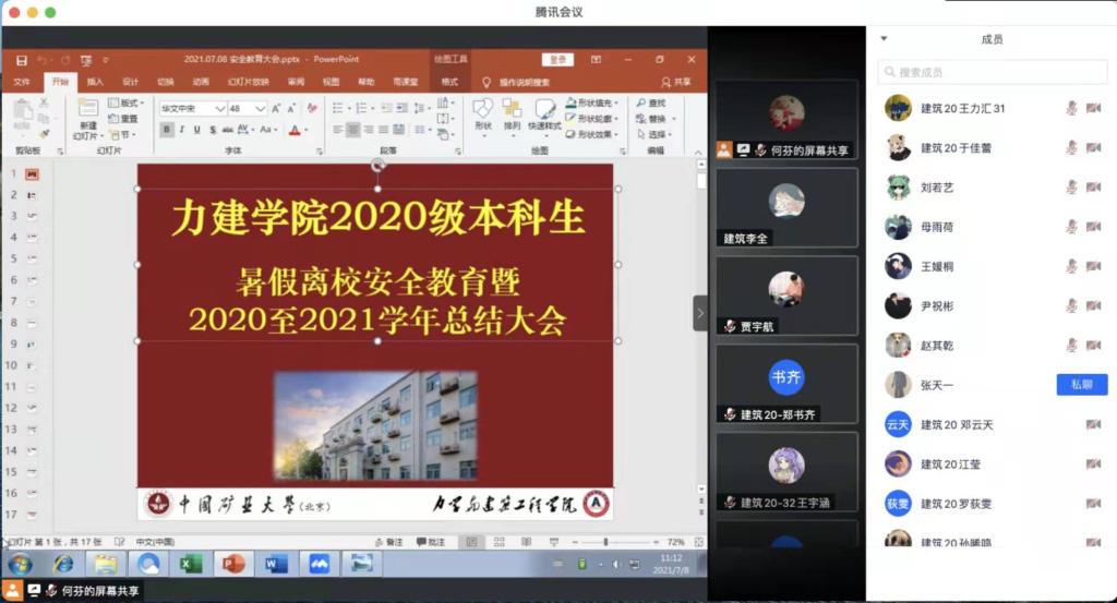 为切实加强学生安全意识,做好暑期安全教育工作。我院于2021年7月8日上午11点在沙教1-519召开了力建学院2020级本科生暑假离校安全教育暨2020至2021学年总结大会。力建学院20级全体本科生参与会议,本次会议由本20级辅导员何芬主持召开。