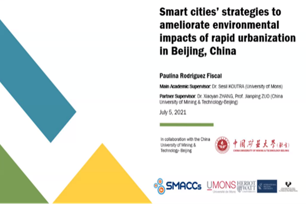 本网讯 2021年7月5日,墨西哥籍学生MissPaulina Rodriguez Fiscal于比利时蒙斯大学顺利通过硕士学位论文答辩,论文题目为’Smart cities’ strategies to ameliorate environmental impacts of rapid urbanization in Beijing, China’。该论文是在中国矿业大学(北京)力学与建筑工程学院张小燕副教授、左建平教授与比利时蒙斯大学Sesil教授的联合指导下完成的,这是我校与比利时蒙斯大学联合硕士学位项目“Smart Cities and Communities”的首位毕业生。