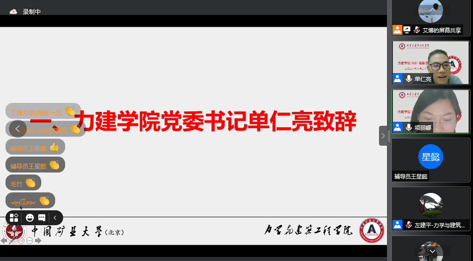 在当前疫情防控常态化的背景下,2021年8月29日晚,中国矿业大学(北京)力学与建筑工程学院召开了2021级本科新生家长会。力建学院党委书记单仁亮、院长左建平、党委副书记项丽娜出席会议,2021级新生班主任、新生辅导员艾博、王星懿以及新生家长等320余人参加会议。会议由党委副书记项丽娜主持。