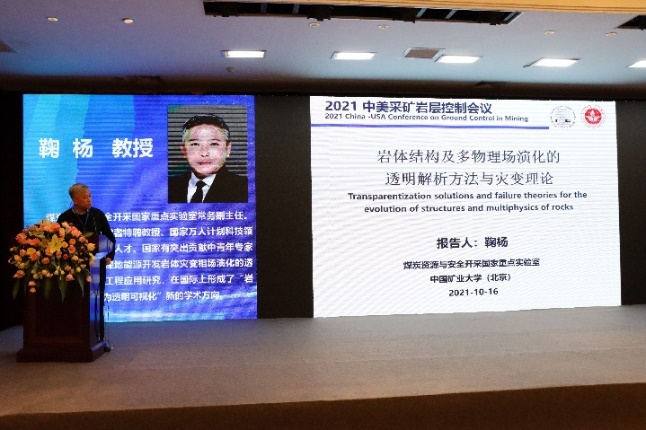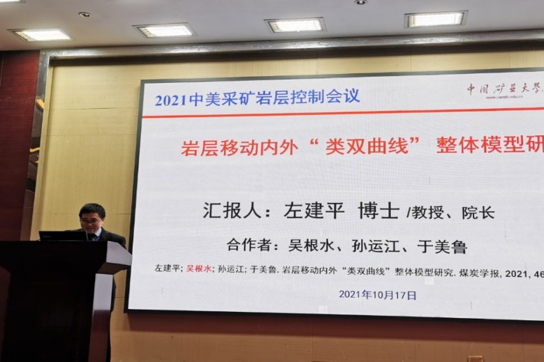 我院三位教师参加此次会议,分别是煤炭资源与安全开采国家重点实验室副主任鞠杨教授、我院院长左建平教授、岩土工程系副主任王雁冰副教授。鞠杨教授做了《岩体结构及多物理场演化的透明解析方法与灾变理论》(Transparentization solutions and failure theories for the evolution of structures and multiphysics of rocks)的特邀报告。左建平教授做了《岩层移动内外“类双曲线”整体模型研究》(Investigation on the inner and outer Analogous Hyperbola Model (AHM) of strata movement)的特邀报告,提出了岩层移动内外“类双曲线”整体模型,更精确地描述上覆岩层与地表沉降的整体移动规律。王雁冰副教授在会议中就《基于数码电子雷管的岩巷深孔-孔内分段爆破破岩机制及应用》(Rock Breaking Mechanism and Application of Deep Hole-Hole Staged Blasting in Rock Roadway Based on Digital Electronic Detonator)进行了交流汇报,提出了目前岩巷钻爆法快速掘进以及煤矿岩巷孔内分段爆破技术存在的问题。