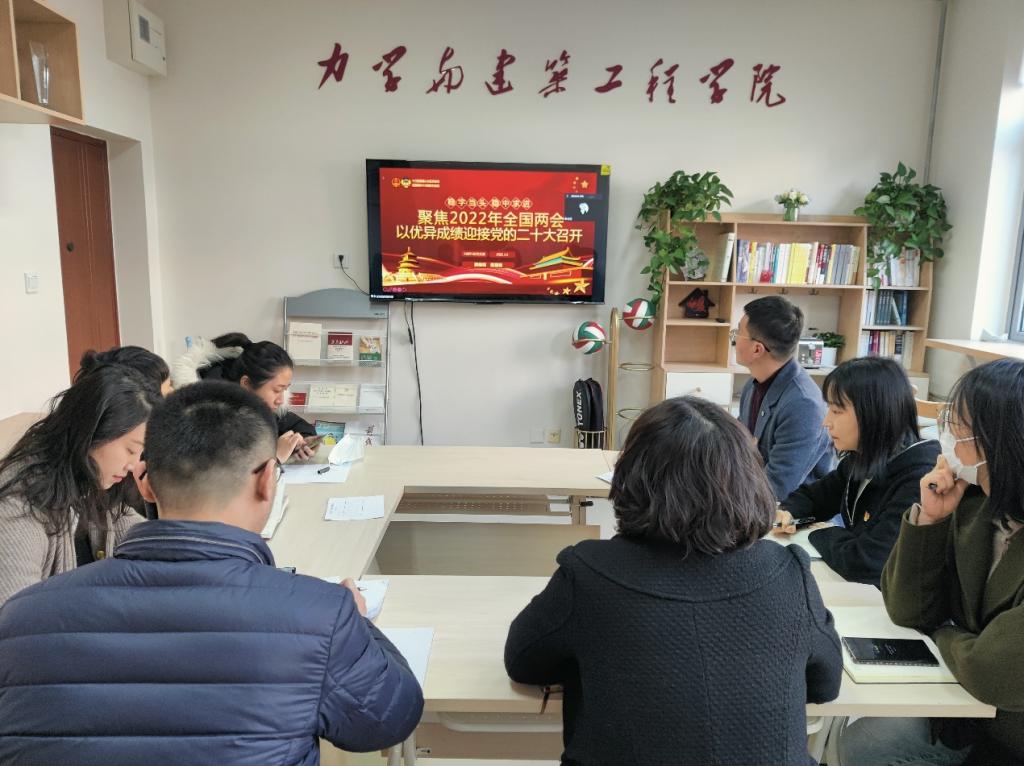 2022年3月7日,我院行政党支部在力建楼204组织集中学习2022年全国两会精神。支部全体成员参与本次学习,院党委副书记、行政党支部书记项丽娜主持学习。