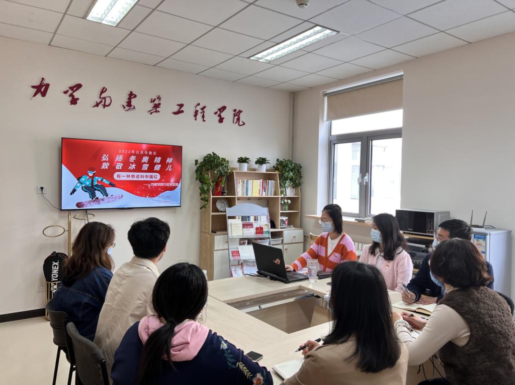 2022年4月8号上午,我院行政党支部在力建楼204召开冬奥专题教育活动。院党委副书记、行政党支部书记项丽娜老师主持学习。
