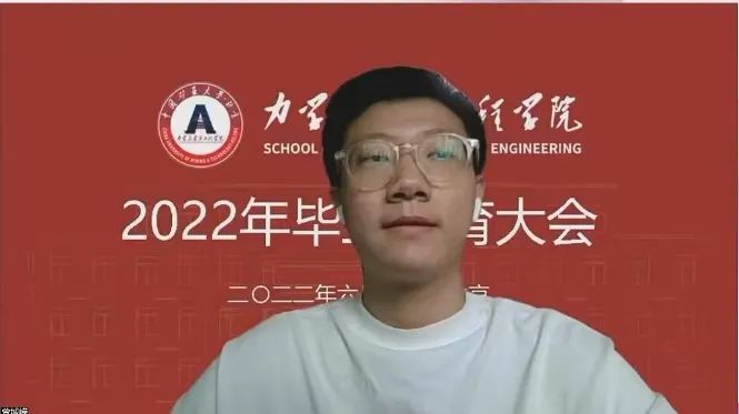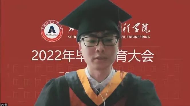 研究生毕业生代表李子祥向坚持立德树人的学院、温和相待的导师、同甘共苦的同学表达了感激之情,回忆了求学生涯的点滴成长。他表示要坚持理想,成为优秀的矿大人,为祖国的未来增添光彩。
