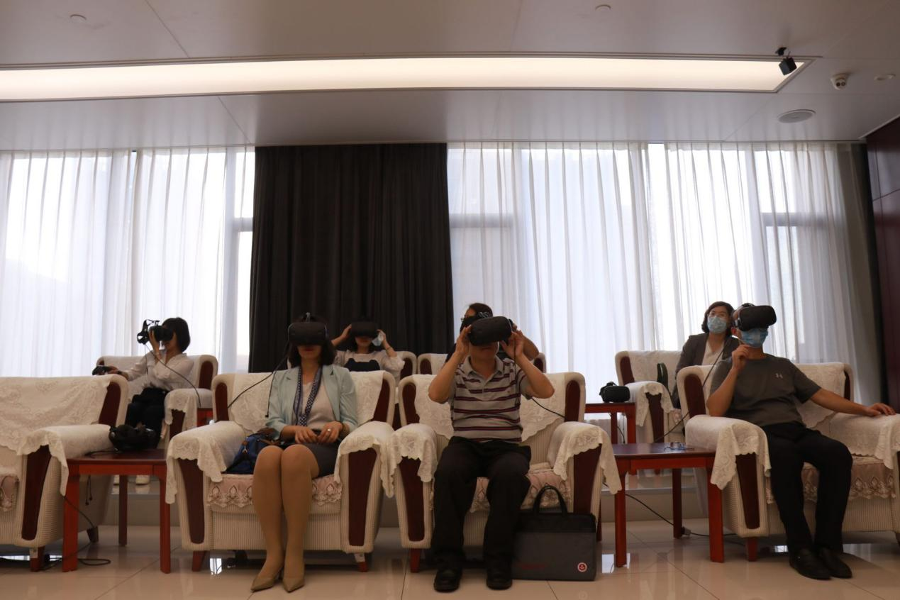 在董事长王青海的带领下,我校一行人来到金诚信业务展示大厅,董事长王青海等人对金诚信矿业管理股份有限公司的发展历程、组织架构、业务领域、创新研发、客户交流、党建文化等方面进行了多层次的详细介绍。走访过程中,金诚信还带领我校一行人通过佩戴3D眼镜、VR眼镜,深度体验矿石开采、矿山开挖的全过程。