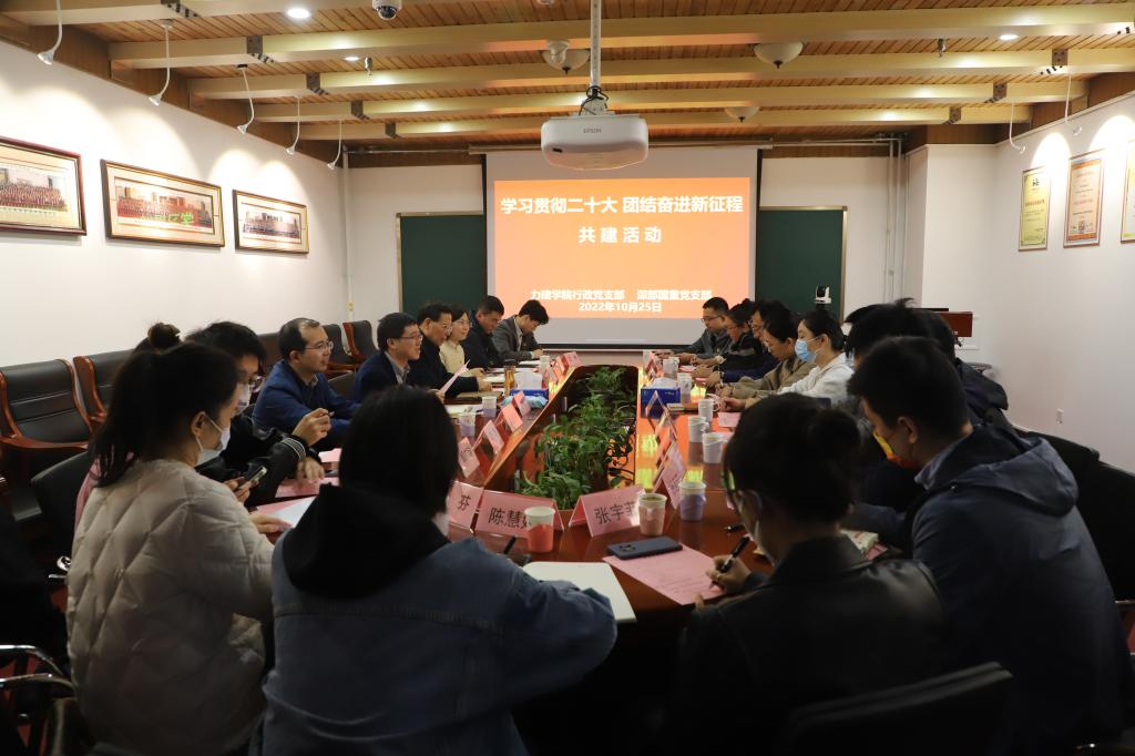 学习贯彻二十大,团结奋进新征程。10月25日下午,力学与建筑工程学院行政党支部和深部岩土力学与地下工程国家重点实验室党支部共建活动成功举办。中国科学院院士、深部岩土力学与地下工程国家重点实验室主任何满潮出席活动,力建学院院长左建平,力建学院党委副书记、行政党支部书记项丽娜,深部国重实验室党支部书记刘冬桥和力建学院行政党支部全体成员、近四年入职的青年教师参加座谈会。