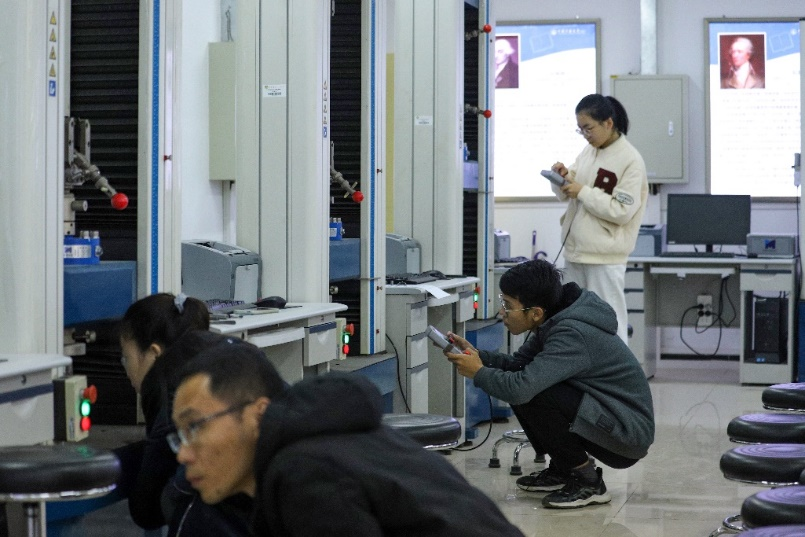 两校区学生踊跃报名参与比拼活动。比赛中,参赛选手精神饱满,认真专注,有条不紊地运用专业知识分析实验题目,制定实验方法,进行各项操作:测量低碳钢和铸铁的尺寸、调试设备、安装试件及操作实验设备等;观察实验过程中两种材料的差异,对比分析实验数据,撰写实验报告。整个比赛过程中我院学子态度严谨,操作流畅,充分展现了较高实验操作技能水平、踏实的学习风气和务实求真的科研精神。