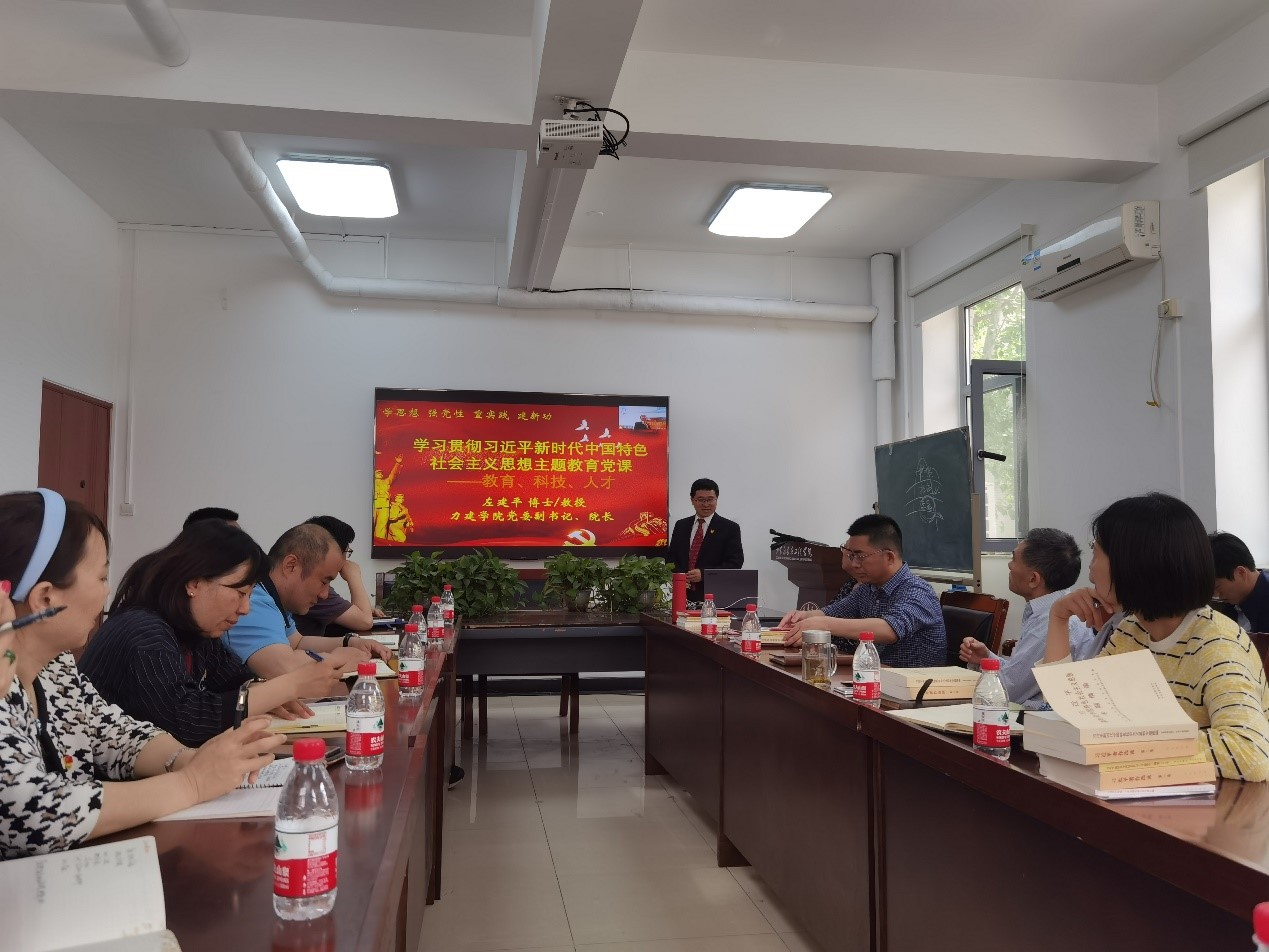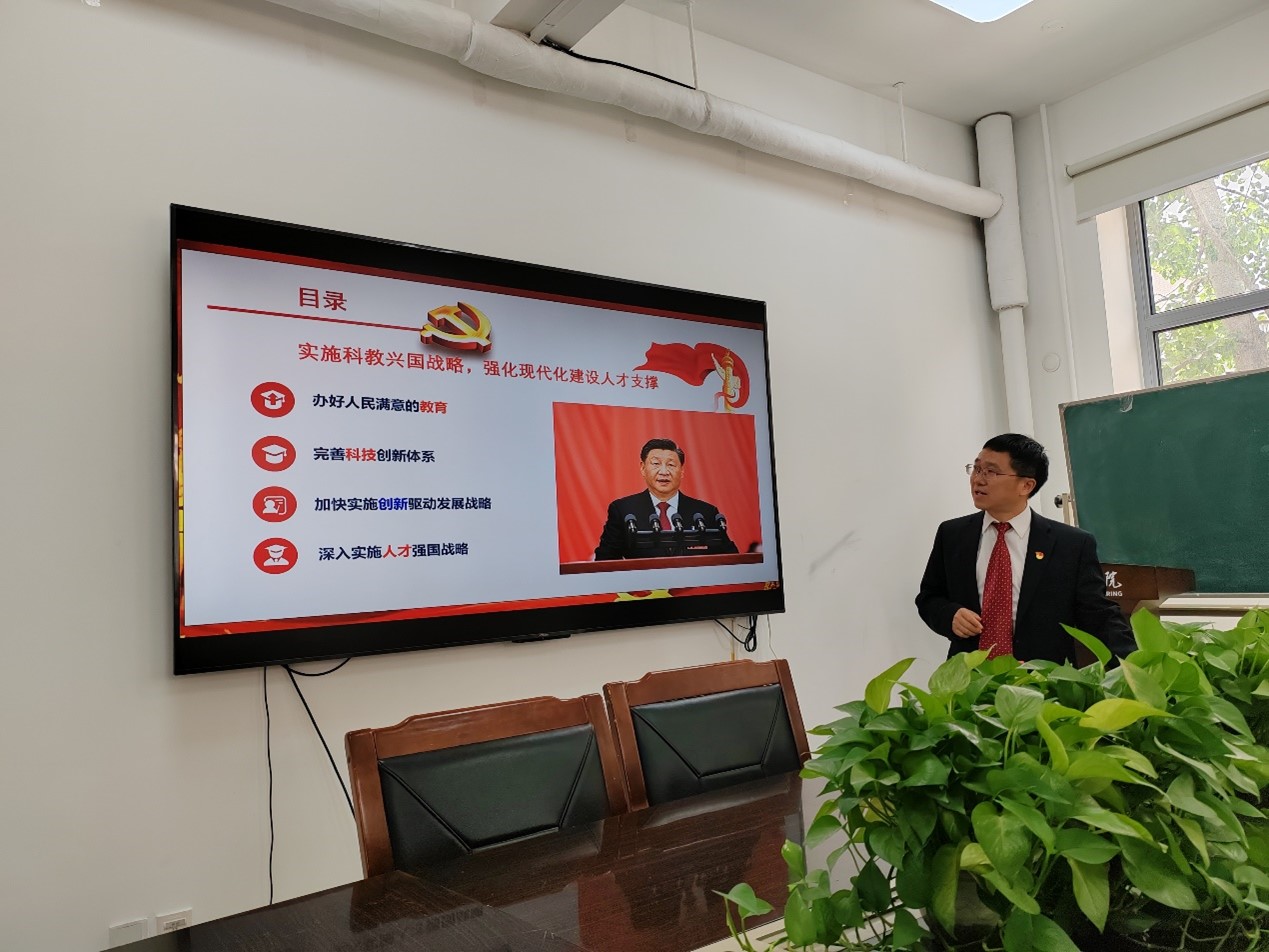2023年5月9日下午,力学与建筑工程学院在学院路校区力建楼222开展学习贯彻习近平新时代中国特色社会主义思想主题教育专题党课,学院院长、党委副书记左建平以“学习贯彻习近平新时代中国特色社会主义思想主题教育党课——教育、科技、人才”为题,通过线下线上相结合的方式为力建学院全体师生党员干部上了一堂专题党课。