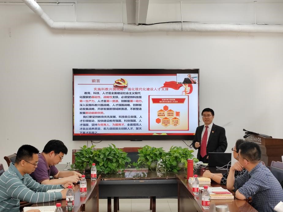 左建平院长详细解读了习近平总书记关于教育、科技、人才的重要论述。他指出,党的二十大报告把科教兴国、人才强国提到了全所未有的高度,为新时代我国教育发展、科技进步、人才培养指明了前进方向,提供了根本遵循。左建平院长分别从办好人民满意的教育、完善科技创新体系、加快实施创新驱动发展战略和深入实施人才强国战略四个方面展开解读。他强调,我们要在以习近平同志为核心的党中央坚强领导下,坚持以习近平新时代中国特色社会主义思想为指导,牢记总书记殷殷嘱托,坚定历史自信,保持战略定力,发扬斗争精神,勇于攻坚克难,不断提高推动高质量发展的本领、在新征程上为教育事业做出贡献。