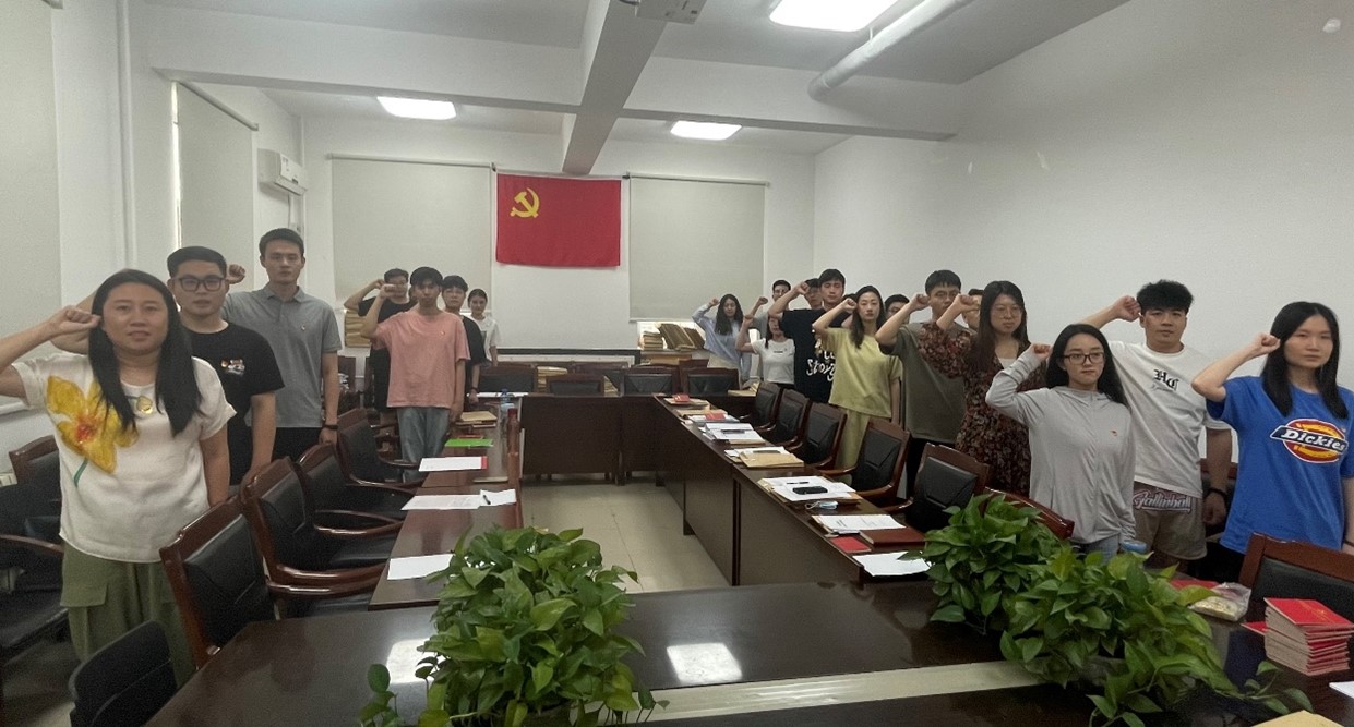 在重温入党誓词环节,硕2020-4党支部书记王雨薇作为领誓人,带领现场所有党员进行重温入党誓词。全体党员肃立,庄严宣誓,大家铿锵有力地重申了对党的忠诚和人民的承诺。