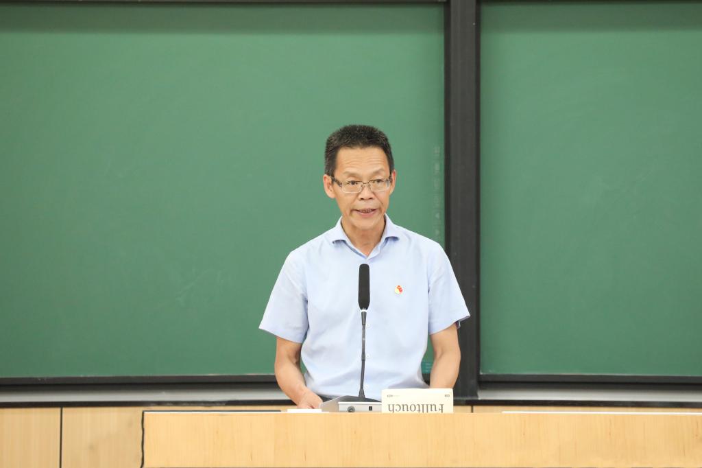 崔希民代表学校致辞,他首先向全体毕业生党员致以热烈的祝贺,向即将成为党的一员的同学们表示欢迎。他肯定了本届毕业生党员在学校和学院事业发展近年来取得的成就中积极奉献、敢于拼搏、勇于担当,作出了不懈的努力和重要的贡献。他表示,广大学生党员要“燃”起理想信念,永葆政治本色;要“破圈”锤炼品格,树立良好形象;要“硬核”担当作为,积极投身社会实践;要“内卷”之外持续学习,增强能力素质。他强调,要时刻牢记共产党员“第一身份”,坚定不移做“两个确立”的忠诚拥护者、“两个维护”的示范引领者,始终要用习近平新时代中国特色社会主义思想武装头脑、指导实践,牢记站在党旗下立下的青春誓言,以理想之光照亮奋进之路,以坚定信念铸牢奋斗之志,发扬党的优良传统和作风,以自信自强、刚健有为的精神风貌走向新的征程,奋力书写为中国式现代化挺膺担当的青春篇章。