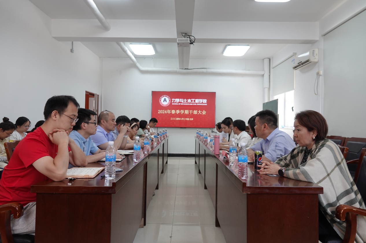 6月24日下午,我院在力土楼222召开2024年春季学期学院干部大会。学院党委书记李帅、院长左建平、院党委副书记项丽娜、副院长岳中文、吴丽丽、刘德军、刘冬桥出席会议,各系(中心)主任和副主任、各教工党支部书记和副书记、学院行政人员、实验员参加会议。会议由院长左建平主持。