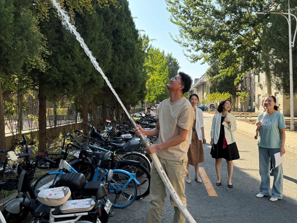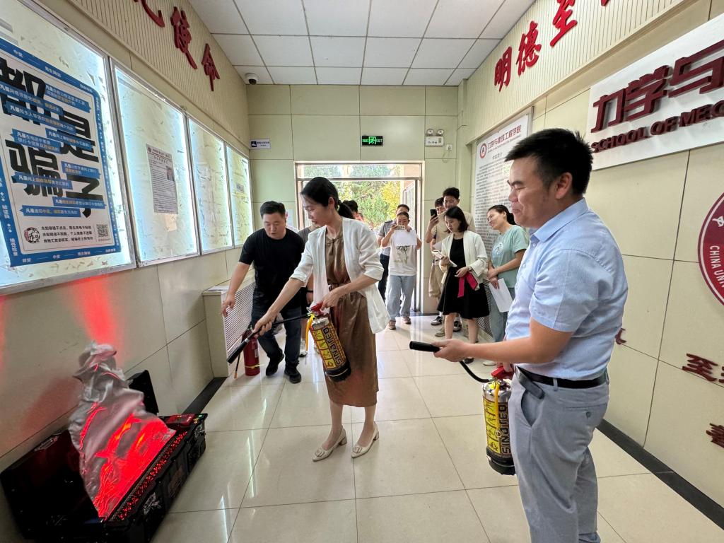 保卫处负责老师科普了消防安全知识,现场演示了灭火器和消防栓的正确使用方法,提问师生“一懂三会”和消防安全四个基本能力的具备情况,对学院的实验室、消防通道、办公室、研究生工作室进行安全检查。