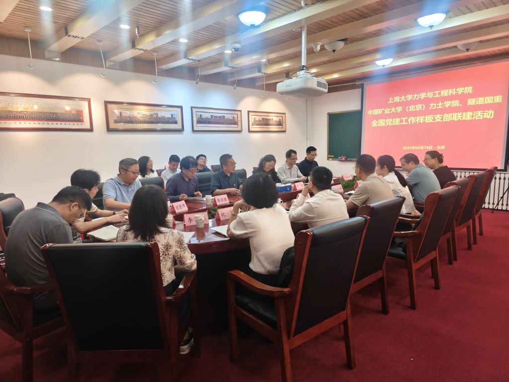 6月18日,上海大学力学与工程科学学院院长张田忠一行来访学院座谈交流。刘冬青对张田忠一行的到来表示热烈欢迎,他表示本次党建联建活动意义重大,希望在两校深厚渊源基础上,通过共建打造党建业务工作深度融合的新模式,进一步推动党建工作和教学科研、人才培养等方面取得高质量的成果。双方围绕党建引领、师资队伍、学科建设和人才培养等方面深入交流,李帅、左建平表示,希望未来在支部共建、党建品牌、“一融双高”、课程思政、学术交流等领域深化合作,为促进两院事业高质量发展,建设教育强国贡献力量。我校力学系党支部、隧道国重实验室党支部同上海大学固体力学研究所党支部就党建与业务深度融合交流工作经验和典型做法,共同举行党建联建签约仪式。会前,与会人员集体参观了隧道国重实验室国家科学家精神教育基地和至达书屋,刘冬桥作了详细讲解。