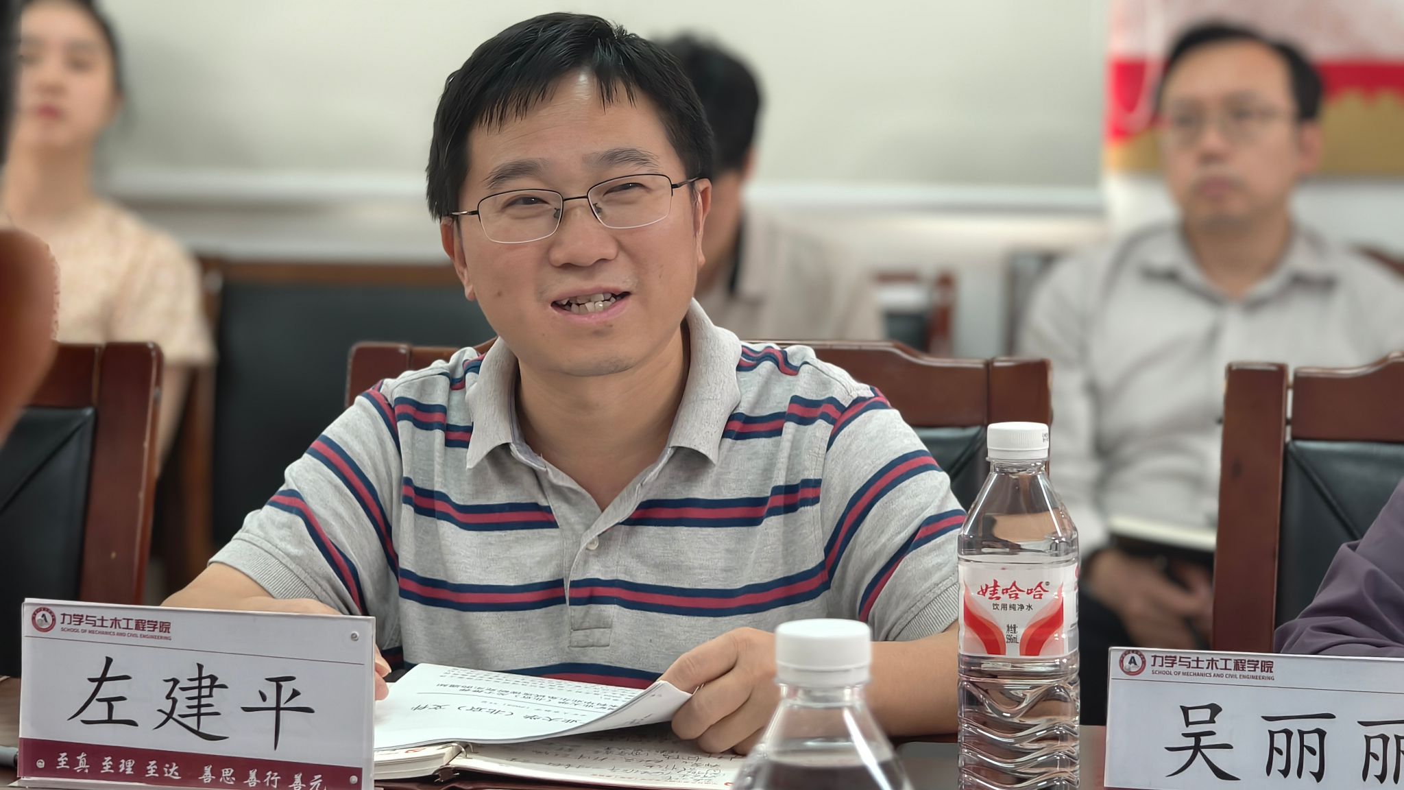 左建平首先对新学期迎新工作做了总结,系级干部积极参与展现了责任担当。本次会议重点围绕本科教学审核评估进行部署。第一,强化领导,明确责任。强调系主任和系书记都是本系评估工作的第一责任人,必须带头组织本系教师参与到评估工作,任务细化落实到具体个人,确保人人肩上有担子。第二,全系动员,协同联动。要求各系内部要全员参与,工程力学和建筑学在本学期同时做好审核评估和专业认证工作,系与系之间也要通力合作,实现资源共享,形成工作合力。第三,提高站位,主动担当。面对审核评估、专业认证与教学改革等多重任务,全体教师要从学院发展全局的高度出发,认识到自身工作的重大意义和光荣使命,积极主动地承担责任。第四,实效为先,成果导向。各项工作推进务必力戒形式主义,坚决以结果说话、用成效检验。要做到措施扎实、过程坚实、结果真实,确保学院迎评准备每一项任务都经得起检验。