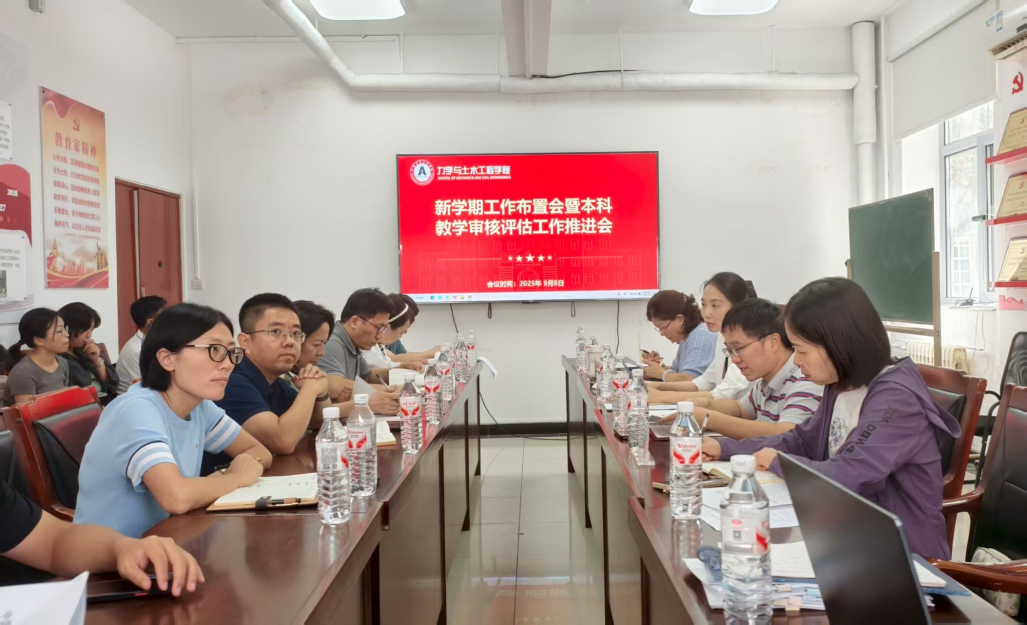 9月8日,我院在力土楼222会议室召开新学期工作布置会暨本科教学审核评估工作推进会,院党委书记李帅,院长左建平,党委副书记项丽娜,副院长吴丽丽、刘冬桥出席会议。学院系(中心、办)主任和副主任,教工党支部书记和副书记、行政老师和青年老师参加会议。会议由院长左建平主持。