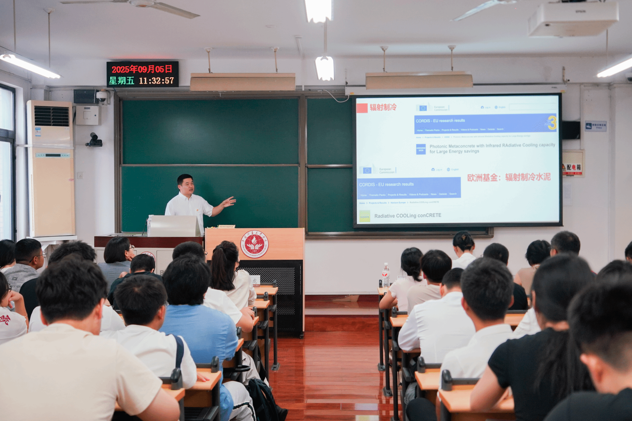 报告会上,吴小虎从个人成长、科研成果与行业贡献三个方面展开,他表示,作为学校工程力学专业毕业生,是矿大(北京)的学习经历为其后续学术研究道路奠定坚实基础。他在读博期间曾赴国外交流学习一年,期间发表12篇学术论文。学术上,他长期深耕热辐射与光学交叉领域,发表国际顶刊论文170余篇,入选“全球30位30岁以下光学进展” 榜单,获中国青年五四奖章,入选全国青马工程科技人才专班。科研上,他重视学科融合与实际应用,将辐射制冷材料融入混凝土,以降低高原路面温度、预防开裂,相关成果已在西藏地区应用,践行“科研需解决实际问题”的理念。行业中,他推动组建全国热辐射青年学术论坛,组织国内外同行专家学者编著领域研究进展。他表示,一个人走得快,一群人才能走得远,希望通过构建学术共同体,凝聚更多力量,助力热辐射领域发展。