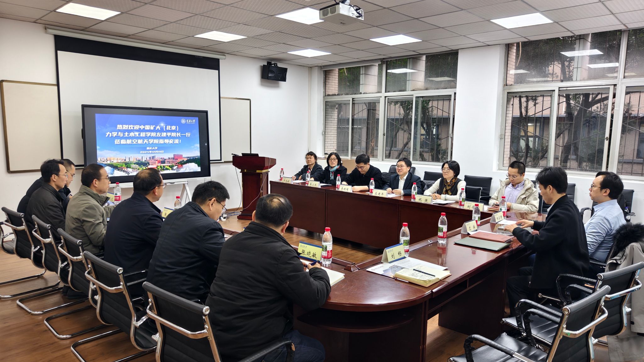 12月22日上午,中国矿业大学(北京)力学与土木工程学院与重庆大学土木工程学院在重庆大学建工馆举行。左建平与土木工程学院党委书记谢强、院长杨庆山进行会谈,院党委副书记、纪委书记陈培稚、教育部重点实验室主任刘纲出席会议。