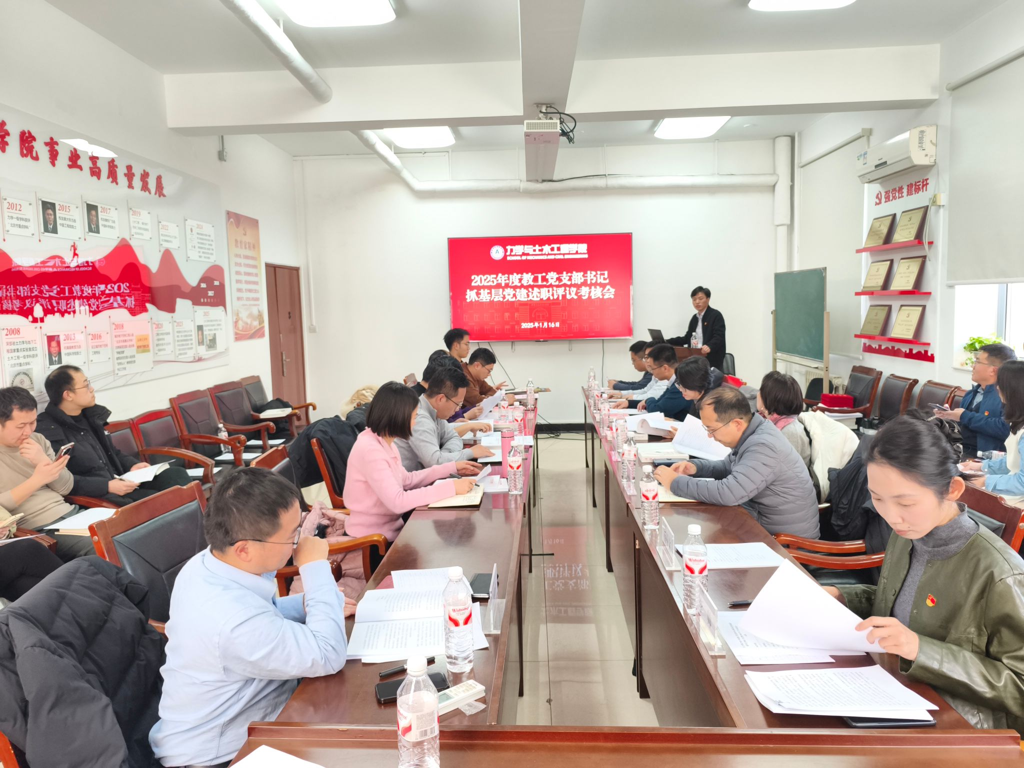 1月16日,力学与土木工程学院在力土楼222会议室召开2025年度教工党支部书记抓基层党建述职评议考核大会。校党委组织部正处级组织员、机关党委书记刘冬青,院党委书记李帅,院长左建平,副院长岳中文、吴丽丽,隧道国重实验室副主任、副院长(兼)刘冬桥,各系党支部(副)书记,各系、中心(副)主任,科级干部,学生党员代表出席会议,院党委专职组织员艾博主持会议。