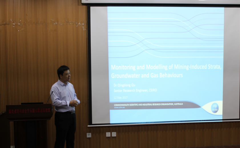 5月12日上午9:00-11:00,澳大利亚联邦科学与工业研究组织(CSIRO)高级研究工程师屈庆东博士在民族楼135室为我校师生作题为Monitoring and modeling of mining-induced strata, groundwater and gas behaviours的学术报告。力学与建筑工程学院副院长宋彦琦教授、左建平教授,煤炭资源与安全开采国家重点实验室彭瑞东教授,力学系主任祝捷副教授、王宏伟副教授出席了学术报告会,参加此次交流活动的还有工程力学、岩土工程和采矿工程等专业的研究生,讲座由王宏伟副教授主持。