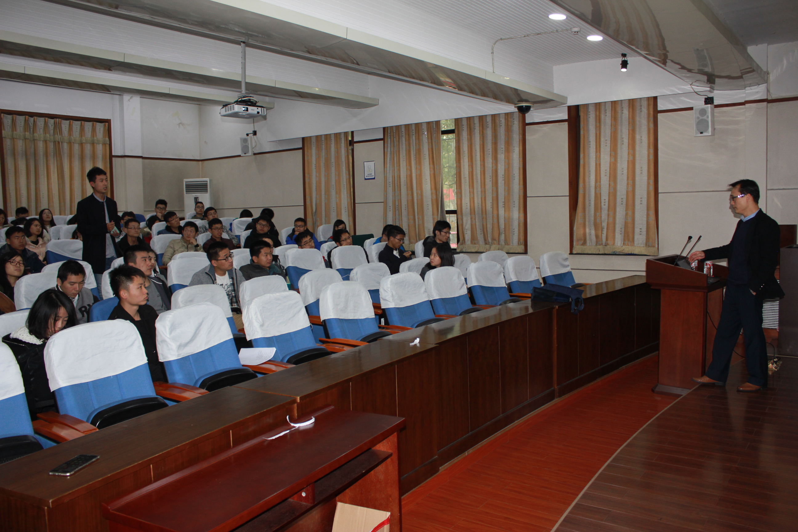 图2 研究生与柏宇教授积极交流与讨论 图3 广大师生与柏宇教授合影    |