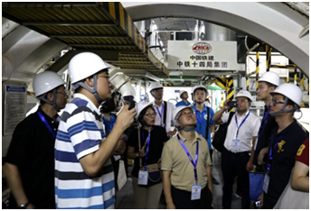 8月5日下午,青年学者在位于北京市海淀区的中铁十四局集团京张高铁一标项目部参观新京张铁路修建情况。项目部负责人详细介绍了新京张铁路的修建进展及碰到的技术难题。