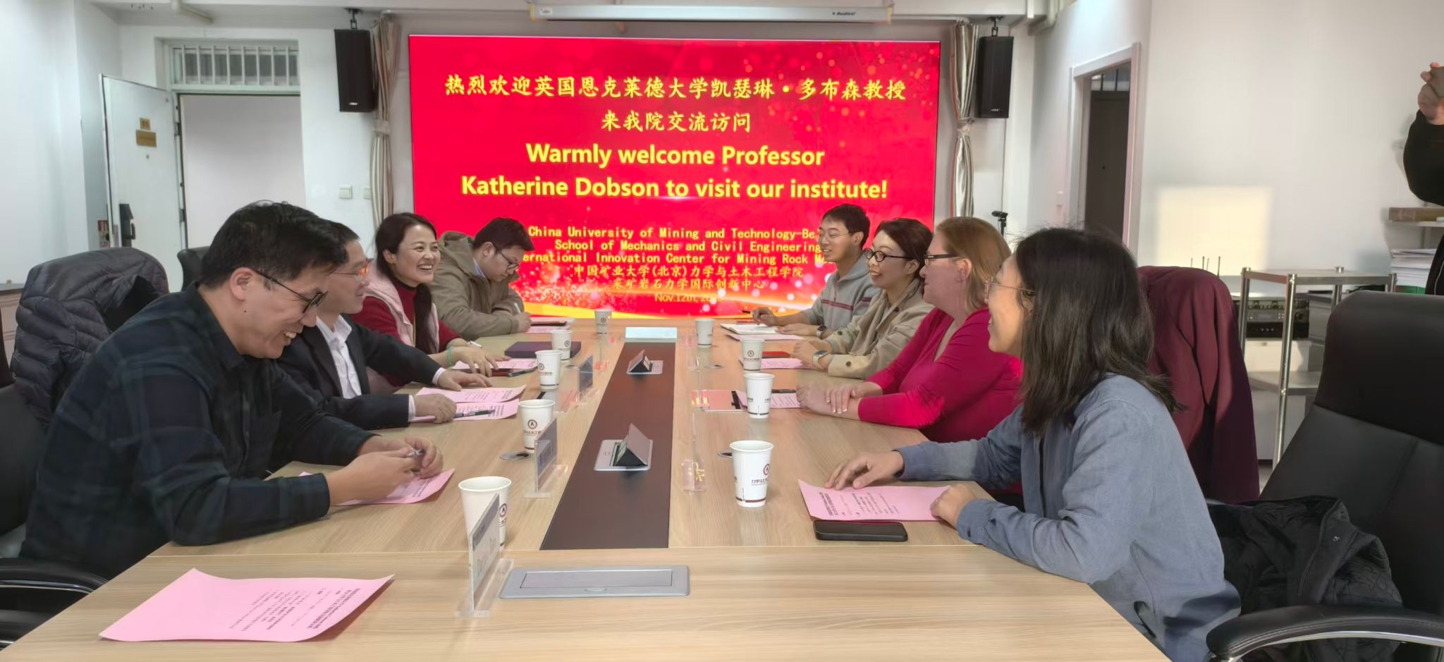 会上,莫蕾钰首先代表学校对Katherine Dobson教授的到访表示热烈欢迎。她详细介绍了中国矿业大学(北京)的办学特色与学科优势。她指出,学校在矿业工程等领域积淀深厚,拥有多个国家级科研平台,且始终高度重视国际学术交流与合作,已与全球多所知名高校建立长期稳定的合作关系,为科研人员搭建了广阔的国际化交流平台,希望以此次报告为契机,进一步深化与英国思克莱德大学在相关领域的合作。