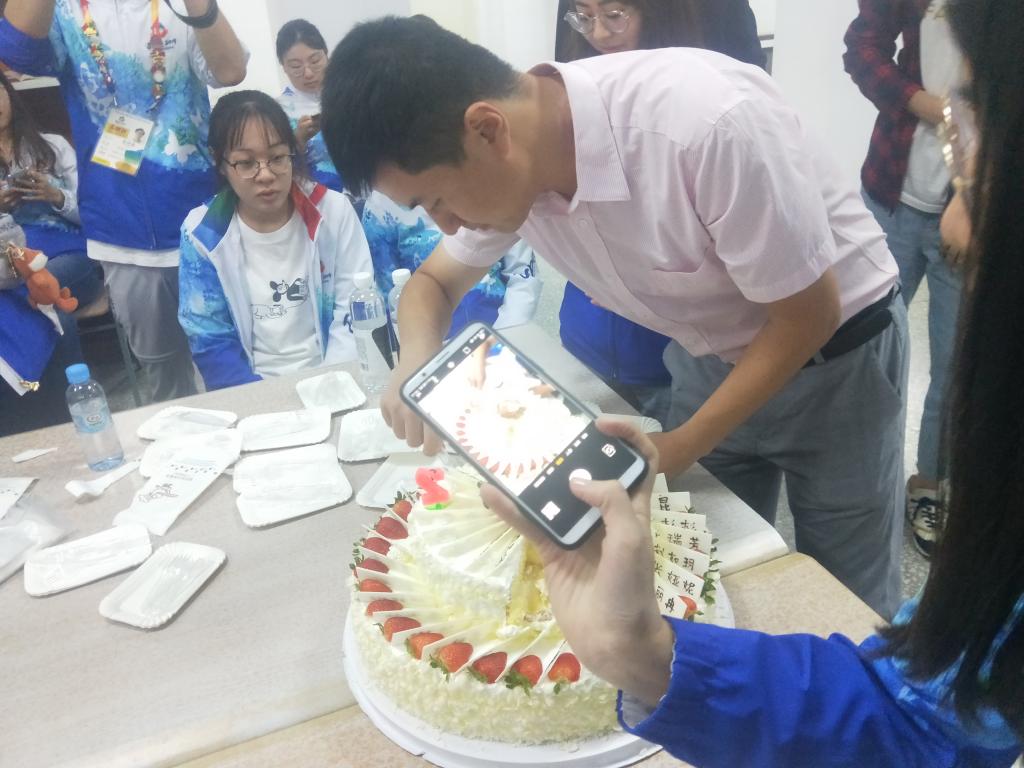 “要说志愿活动期间最难忘的经历,应该就是作为组织者之一筹划集体生日吧。为了给同学们制造惊喜,杨老师和我们几个领队在当天的志愿活动结束之后早早的就赶到了蛋糕店,把大蛋糕悄悄地护送回了志愿者之家。为了确保不出差错,‘拉电闸,端着蛋糕在黑暗中行走,在大家注意力汇聚过来的时候及时放生日歌’——每一个环节我们都精心进行彩排。最后不辱使命的出色完成了我们的任务,看着志愿者惊喜的表情,我们一直悬着的心也总算是放下了”