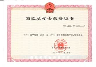 (a)国家奖学金证书 (b)高等数学竞赛三等奖