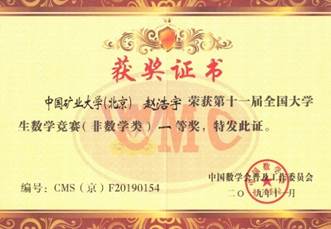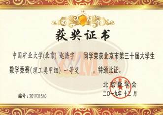 (c)北京市大学生数学竞赛获奖证书 (d)全国大学生数学竞赛获奖证书