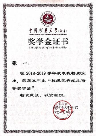(a)校级特等奖学金获奖证书 (b)校一等奖学金证书