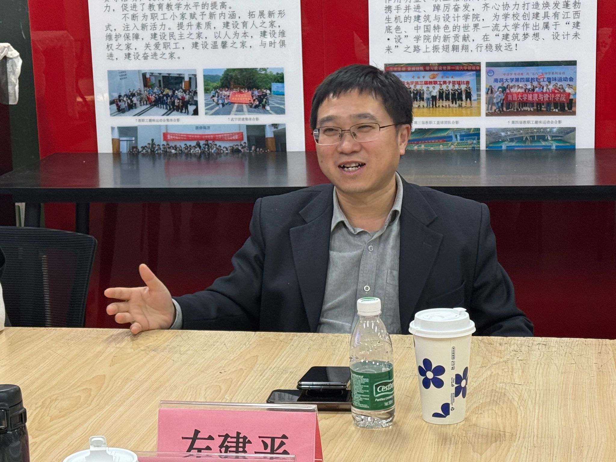 左建平与南昌大学工程建设学院党委书记熊进刚、执行院长李火坤进行会谈。院党委副书记沈松,副院长陈勤、蒋水华、刘伟平、何丽沙出席座谈会。